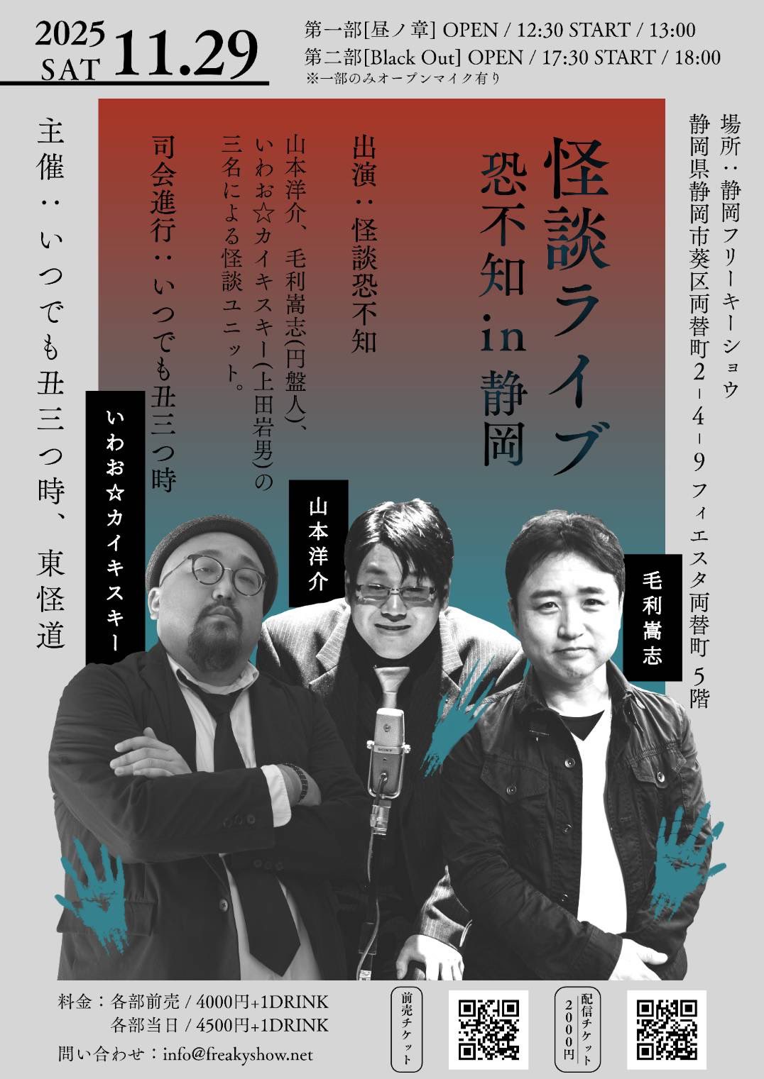 | 2025年11月29日(土) [昼の部] 怪談ライブ[恐不知 in 静岡] 【第一部】 | ||