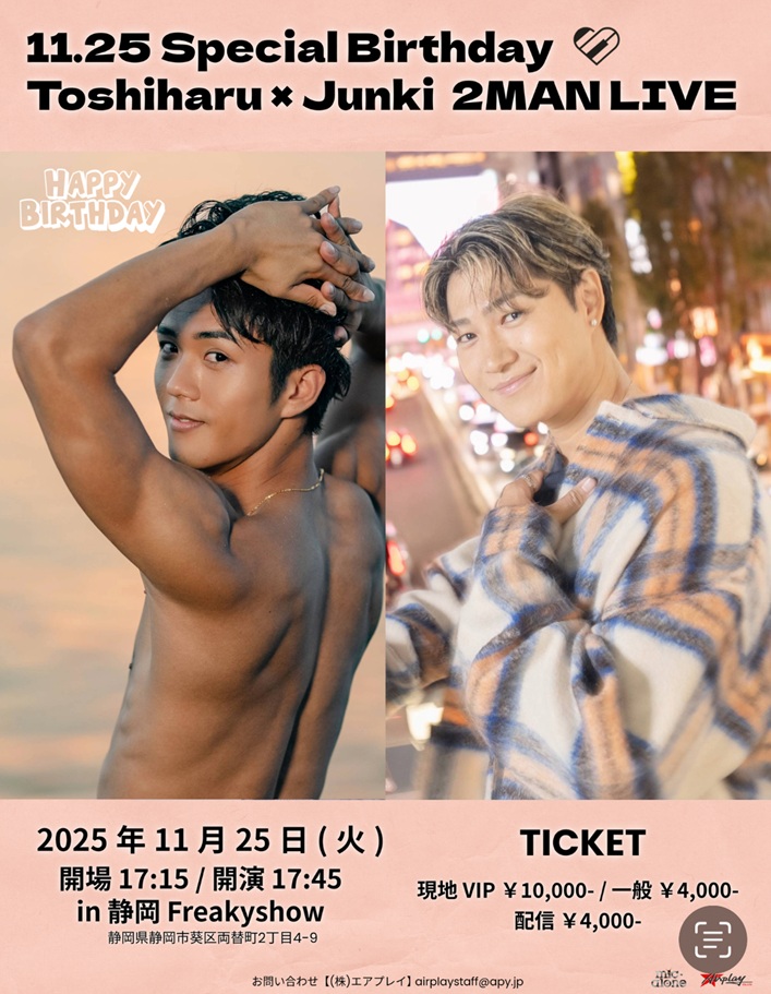 | 2025年11月25日(火) Special Birthday Toshiharu x Junki 2 MAN LIVE in Shizuoka | ||